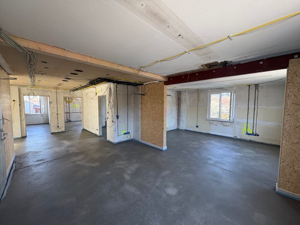 Was vorher noch nach Baustelle aussah, fühlt sich jetzt schon mehr nach echtem Raum an. Man kann sich immer besser vorstellen, wo später gearbeitet, beraten und zusammengearbeitet wird.